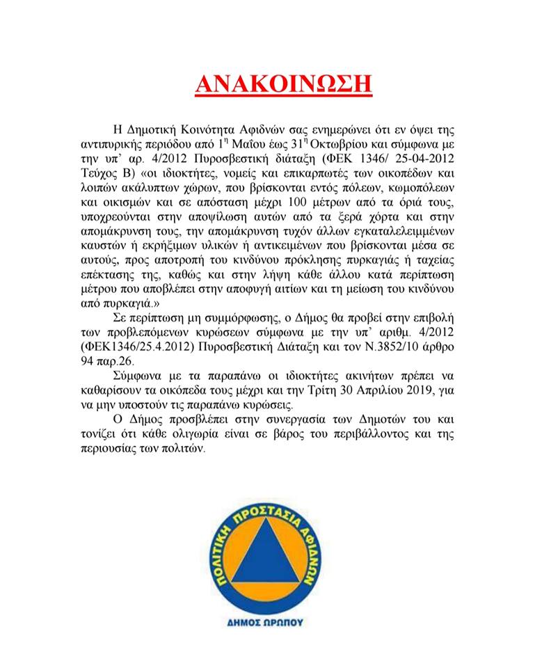 Ανακοίνωση του Δήμου Ωρωπού εν όψη της αντιπυρικής περιόδου. 12 Μαρτίου 20191 Νοεμβρίου 2021 sdipadmin ΠΟΛΙΤΙΚΗ ΠΡΟΣΤΑΣΙΑ Κοινοποιήστε:Tweet Κλικ για αποστολή ενός συνδέσμου μέσω email σε έναν/μία φίλο/η(Ανοίγει σε νέο παράθυρο) Email Κλικ για εκτύπωση(Ανοίγει σε νέο παράθυρο) Εκτύπωση